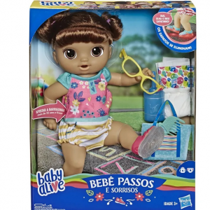 Ennek az imádnivaló babának vannak cipői, amelyek világítanak, amikor elindul. A gyerekek úgy tehetnek, mintha sétálnának vagy ugranának, hogy felgyújtsák a cipőben lévő lámpákat. Etesse meg (vízzel), amikor éhes, majd ügyeljen arra, hogy ki cserélje a pelenkáját amikor vizes. A baba ásítást utánzó hanggal jelzi, amikor fáradt és készen áll az alvásra. Ez a baba legfeljebb 25 különböző kifejezést és hangot tud mondani. Vigyázzon új családtagjára, és mutassa meg barátainak, hogyan világít a cipője, amikor sétál!