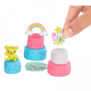 Ez a kreatív készlet a tökéletes szórakozást ad gyermekének – három tartályt tartalmaz rózsaszínű, kék színű műanyag tömeggel és konfetti hozzáadásával, amelynek köszönhetően saját süteményeket készíthet. A konyhai szigetet három részre osztják, ahol a gyerekek „süthetnek”, díszíthetnek és bemutathatják tortáikat. A készletben több mint 10 kiegészítő számára van hely. A fiatal cukrászok segíthetnek a Barbie-babáknak egy vagy két emelettel sütött sütemények sütésében, díszítik az oldalakat forgó sablonokkal, díszítik a pékárukat egyedi díszítéssel, valamint eladhatják és dobozba csomagolhatják, vagy különálló darabokat szolgálnak fel egy tányérra. . A szett a gyermekek kezére van tervezve, és ösztönzi a kreatív szórakozást.
