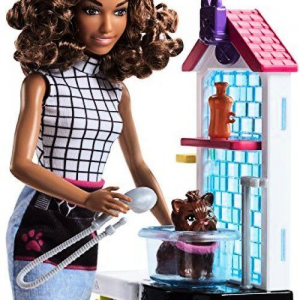 Fedezd fel a karrieredet a Barbie babákkal és játssz olyan készletekkel, amelyek szórakoztató funkciókat tartalmaznak a Barbie kedvtelésből tartott groomer baba egy kisállat-vásárlóval és ápoló állomással jön. A mosogató vízmentesen eltávolítható. Egy ápoló helynek van egy horogja a szárítógéphez. A polcok tartják a termékeket és egy törülközőt. Játssz egy kisállat-napot a Barbie-babával a karrier-témájú ruhában, köténnyel.