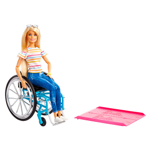 Ez a baba új játéklehetőségeket kínál a kézi irányítású kerekesszékkel, aminek forgó kereke és működő fékje van. Rámpa is tartozik hozzá, így Barbie baba könnyen mozoghat a küszöbökön, lépcsőkön. A játék tartalma: Barbie Fashionistas baba divatos ruhában és kiegészítőkkel, kerekesszék és rámpa. A baba nem tud egyedül állni vagy gurulni. A színek és díszítések különbözőek lehetnek. Barbie baba nagyra értékeli a különbözőséget, hiszen vannak egyedi tervezésű babák, amik a valódi történetmesélést és a megvalósíthatóságot támogatják.