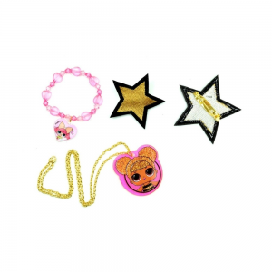 Ezek a LOL Surprise csillagok közepes ékszer szetteket tartalmaznak, melyek hajcsatokat, hajgumikat, karkötőket, kitűzőket és nyakláncokat rejthetnek, persze mind a kedvenc LOL Surprise karaktereiddel díszítve! Hogy melyik érkezik hozzád a csillagban – az persze meglepetés!Minden lány kedvence lesz, aki szereti a divatot és a meglepetést!