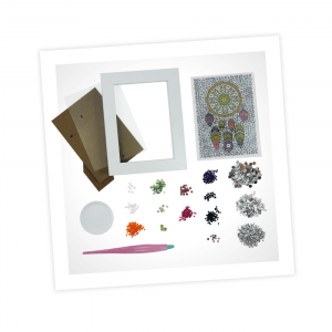 Ha megtaláltad a megfelelő számokat és betűket, amelyek segítik az öntapadós strasszok táblán való elhelyezését! A dobozban található ceruza segítségével, ami segít felvenni a strasszokat, könnyedén elkészítheted a képet. A 3 féle méretű matt és fényes strasszok növelik az elkészült kép eredetiségét! A fából készült keret a készlet tartozéka. Jó szórakozást !