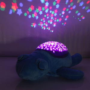 Főbb jellemzők:- Nyugtató csillagos égbolt-vetítés- Kivetítő kupola csillag- ésholdmintával – Enyhe test és plüss fej- Különböző nyugtató dallamok- LED-es lámpatest változó színekben- Hangerő állítható- A fény be- és kikapcsolható- Automatikus kikapcsolás 1 óra múlva Az éjszakadi Led fény működtetéséhez 3 x AA 1,5 V-os elem szükséges Műszaki adatok:Mérete: 320 x 275 x 115 mm Az éjszakai LED fénnyel világító teknős már 6 hónapos kortól ajánlott !