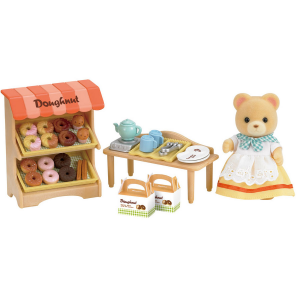 Fánkárus szett Sylvanian Families. Több, mint 30 darab részből álló szett. A kis Margaret nagyon édesszájú, és imád ínycsiklandó desszerteket és sütiket készíteni. Tea, fánk, muffin, ezzel a szettel bármelyiket el tudja készíteni.