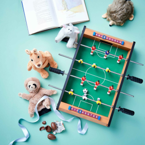 Rendezzetek házi focibajnokságot az asztali GOOOLIAT asztali csocsóval. Vidám este elé néz az egész család. Ajándéknak is tökéletes választás. Két játékos számára. Köszönhetően a méretnek, bárhová magával vihető. Két golyót tartalmaz. Könnyen összeszerelhető és raktározható.