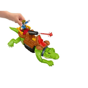 Mindenki jól ismeri Pán Péter meséjét, és Soha-ország legelvetemültebb kalózkapitányát Hook-ot is. A félkarú kapitány most egy nagyon izgalmas játékszettben kerülhet a gyerekek polcaira, hiszen a csomag nem csak a kampókezű kalózt, hanem egy hatalmas krokodilt is tartalmaz. A kroki úgy mozgatható, akár az igazi, így garantált a sok izgalom. A krokodil hátára szerelt építmény lehetővé teszi Hook-nak, hogy meglovagolja az állatot, sőt a rugós kilövővel felszerelt ágyú segítségével komoly vesélyt jelent ellenfeleire. Jó szórakozást !