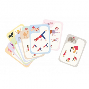 A játék menete: Keverd meg a kártyákat. Minden játékos 4 lapot kap, a többit pedig tedd képpel lefelé egy halomba. A cél az, hogy gyűjts annyi 4 db-os kártya sort (1 jóga póz és annak 3 változata), amennyit tudsz. A játék az óramutató járásával megegyező irányban halad és a legfiatalabb játékos kezd. Egy játékosnak legalább 1 kártyával kell rendelkeznie ahhoz, hogy egy másik kártyát kérjen ugyanabból a készletből. Bármelyik játékostól lehet kérni kártyát. Ha megszerezted a kért kártyát, jogosult vagy egy következő körre. Ha nem, akkor húzz egy kártyalapot a kupacból és a következő játékos jön. Amikor egy játékos összegyűjtötte mind a 4 kártyát egy sorból (pl. kutya, fa, stb) a kártyákat képpel felfelé az asztalra kell helyezni és bármelyik játékos kérheti, hogy csinálja meg a jóga pózokat – bármilyen sorrendben. A játszma addig tart, amíg az összes sort össze nem gyűjtöttétek. Ha vége a játéknak, minden sort fordítsatok képpel felfelé és a kártyáitokon megjelenő jóga pozíciókat adjátok elő egyenként, egymás után. Figyelem: a jógi szórakoztató játékokban szereplő információk csak tanulási és szórakoztató célokat szolgálnak. A játék használata kizárólag a felhasználó felelőssége. Ha egy póz fárasztó vagy kényelmetlen – ne csináld. Fizikai problémák vagy speciális egészségügyi állapot esetén kérjük konzultálj orvosoddal, mielőtt elkezded a gyakorlatokat. Jó szórakozást !