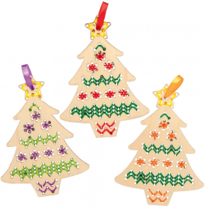 Karácsonyfa keresztszemes varrókészlet fa függődísz 5 db-os Baker Ross