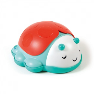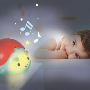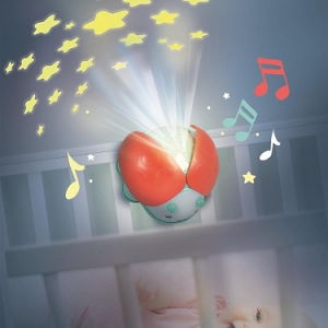 A Katicás kivetítő és éjszakai fény nem hiányozhat egyetlen apróság szobájából sem! A tüneményes kis katica, nyitott szárnyakkal csodás, színes csillagokat vetít, ami megnyugtatja és a kedves dallamok kíséretében biztosan álomba ringatja kisbabádat. Lezárt szárnyakkal pedig lágy éjszakai fénnyel tölti be a szobát és mosolyt csal a picik arcára ébredéskor. A talpacskáján elhelyezett praktikus akasztónak köszönhetően könnyedén rögzítheted a kiságyhoz.A játék 3 db 1,5V AAA elemmel működik. A csomagolás demo elemet tartalmazza.