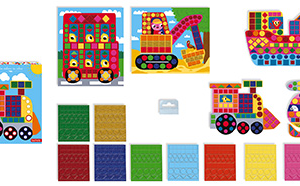 Készíts mozaiktechnikával 5 különböző járműves képet. Készlet tartalma: 5 sablon, 10 darab színes mozaiklap Méret:21*25 cm
