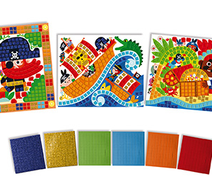 A Janod Atelier készlet gyermekek készségeinek és képzeletének fejlesztésére és előmozdítására. A különféle technikák révén történő alkotás elősegíti a koncentrációt és a koncentrációt, a természetes felfedezéseket és a művészi képességeket. Kreatív alkotókészlet, ebben a kreatív játékban a gyermekek finom motoros képességeit, türelmét és a részletek iránti figyelmet fejlesztik.Kreatív kalóz mozaik kreatív készlet A Janod Atelier Mini 3 kártyát tartalmaz gyönyörű kalóz témákkal és 6 lap színes mozaikpapírt.