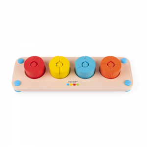 A fajáték ideális arra, hogy megismerkedjen, miközben szórakozik egy egyszerű matematikai koncepcióval: a törtekkel. 1, 2, 3 vagy 4 darabot kell elhelyezni a megfelelő színű rúdra, és kész. Nagyon okos, a tálca csúszásmentes szilikon lábakkal van felszerelve a nagyobb stabilitás érdekében. Ez a fából készült játék is elkíséri gyermekét a formák és színek felfedezésében. Az alkatrészeket vízzel festették. Jó játékot !