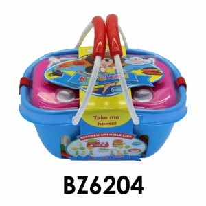 Kosaras edény készlet, gázfőzővel, 23 darabos készlet, 25×11 cm kék vagy rózsaszín kosárban