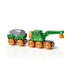 Húzd és szállítsd ezt a kőrakományt ezzel a szuper intelligens forgó emelőkarral ellátott mozdonnyal! Ezt a színes hatkerekű teherszállító mozdonyt és rakományát könnyedén hozzácsatolhatod bármely más BRIO vasúti kocsihoz. A rakomány könnyen felemelhető a darun lévő mágneses darabka segítségével. A fa játékvonatairól elhíresült, 1800-as évektől minőségi játékokat gyártó svéd cég a világ egyik vezető fajáték készítője. A kis kezekre méretezett játék már 3 éves kortól élvezhető.