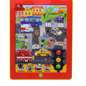 Oktató tablet, közlekedj okosan, magyarul beszél, elemes(3xAA), közlekedési szabályokat megismerteti, játékosan kérdezi, hangokat ad, zenél, 26×30 cm dobozban