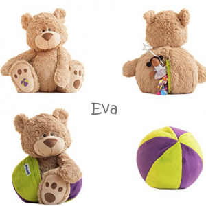 Játssz Eva-val, a labda pajtival! Eva-nak köszönhetően nem kell választanod a maci és a labda között! Eva maci formában egy édes plüssjáték, akit magadhoz ölelhetsz és akihez hozzábújhatsz, de még legféltettebb játékaid, kincseid is benne tarthatod. Amikor labdázni támad kedved, akkor sem kell elhanyagolnod kedvenc plüssmacid, csak annyi a dolgod, hogy a Eva hátán található cipzárt kihúzod és átalakítod a plüsst labdává! A maci magassága: 40 cm.