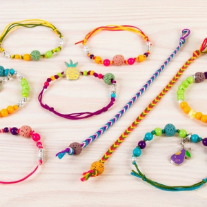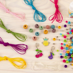Ezzel az ékszerkészítő szettel csodás gyümölcsillatokat zárhatsz egyedi készítésű karkötőidbe a különleges gyöngyök segítségével. A gyümölcsös témájú medálok és színes gyöngyök mellett a készletben láva gyöngyöket is találsz, melyekre illatanyagot – parfümöt cseppentve a karkötőid illatosak lesznek!