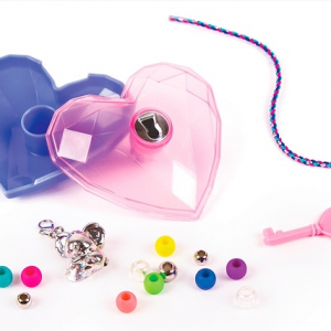 Ha készen állsz a meglepetésre, hogy vajon milyen varázslatos medál rejőzik ebben a kulccsal nyitható, szív alakú ékszerdobozban? Összesen 8 különböző, színes Swarovski® kristállyal díszített, állatos medál egyike vár rád, és a hozzá illő csodás karkötő kellékei!Fedezd fel, és alkosd meg az útmutató segítségével, a csodás Swarovski® kristállyal díszített karkötődet! Akár ajándékba is adhatod barátnődnek. A készlet tartalma:- 1 titkos medál Swarovski® kristállyal – 8 különböző állatfigurával gyűjthető- zárható, szív alakú tartó- kulcs- stílusos gyöngyök- színes zsinór- gyűjtői füzet- útmutató