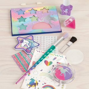 Minden kislány álma, hogy a meseszép tündérek és unikornisok világában érezhesse magát. Ezzel a Változz unikornissá smink szettel most itt a lehetőség! A varázslatos mesevilágot idéző minták és finom színek használatával megtörténik a varázslatos átalakulás. A készlet tartalma: – Egyszarvú kürt alakú szemhéjecset, 6 színű szemhéjfesték, Pirosító, 2 db mini kozmetikai kefe, Ajakbalzsam, 2 színű hajkréta, Szivacs, Tetoválás, Testre ragasztható ékkövek, Körömlakk, Köröm matricák, Körömreszelő, Útmutató ami segít a szépítkezésben.