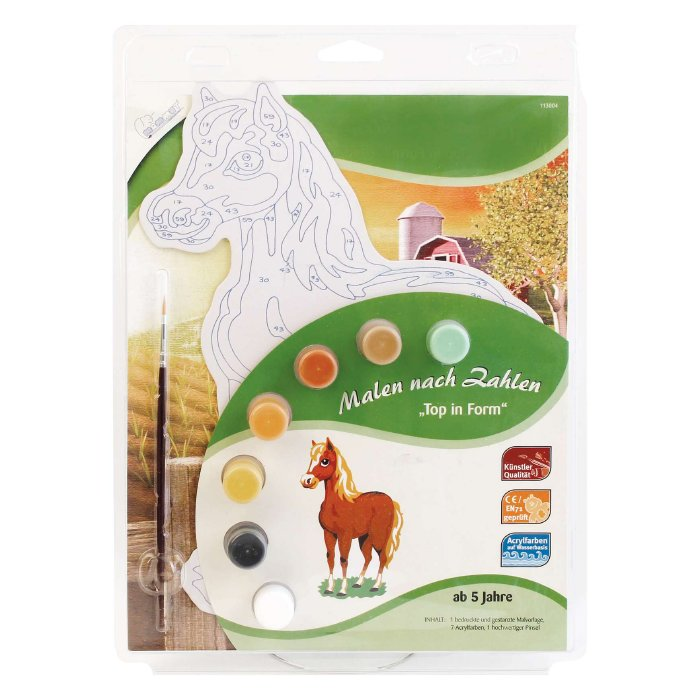 LÓ – 1 nyomtatott színezhető kép, 1 ecset, 7 akril festék Mérete: 24 x 33 x 2,5 cm