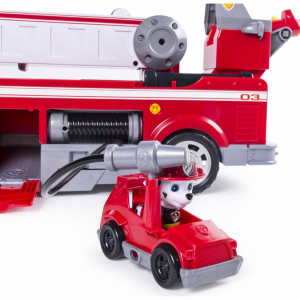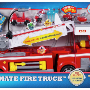 Marshall mentse a napot a Adventure Bay-ben az Ultimate Rescue Fire Truck-al! A villogó fényekkel és hangokkal felszerelt mentő jármű készen áll minden akciódús küldetésre. Használja a forgattyús kart az akadályok mozgatásához, és a kihúzható létra új magasságok eléréséhez – könnyen aktiválható, felemelkedik, 2 lábig terjed és elfordul. Ne felejtsd el használni a hordozókat a nap mentéséhez! Az Ultimate Rescue missziókhoz mind a 6 PAW Patrol kölyöknek fel kell ugrani a tűzoltókocsi fedélzetére.