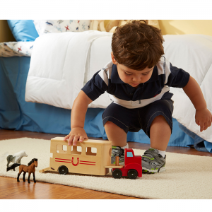 Tereld be a lovacskákat a kamion utánfutójába, és máris útra készen állsz! Az utánfutó rámpája lehajtható, hogy a lovak könnyen be- és ki tudjanak szállni. A játék fejleszti a finommotoros készségeket és a képzelőerőt. Méret: 35.052 x 13.97 x 8.382 cm