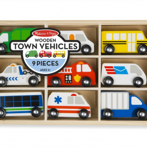 Szerezz örömet gyermekednek a minőségi, strapabíró fából készült járművekkel. A fa járművekkel bejárhatja az egész várost! A 9 darabos készlet tartalmaz kukás kocsit, vontató kocsit, postás autót, iskolabuszt, tűzoltó autót, jégkrémes autót, és teherautót. A játékok mérete kb. 10 cm hosszú és mindegyik könnyen felismerhető, élén színekkel festett. A játékok 3 éves kortól könnyedén megfoghatóak és kezelhetőek. A játék önfeledt szórakozást nyújt a gyermekek számára a Melissa & Doug Játékszőnyeggel együtt (külön megvásárolható). A járműveket tárolás vagy kiállítás céljából a készlethez tartozó farekeszes tárolóba lehet helyezni.