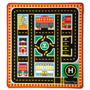 Mentőjárművek játszószőnyeg Melissa & Doug. Színes játszószőnyeg, 4 darab mentőjárművel (mentő, tűzoltó, helikopter, rendőr). Mérete: 99 x 91 cm.
