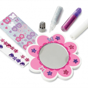 Gyermeked egyedivé varázsolhatja ezt a zsebméretű, minőségi fából készült tükröt a készlethez mellékelt csodásan csillogó ékköves matricákkal, csillám ragasztóval. A rózsaszín-fehér tükörnek mindkét oldalát ki tudod díszíteni a 45 különböző díszítő elemmel. A tükör átmérője kb. 10 cm. Figyelem! Apróbb darabok lenyelése fulladást okozhat. 3 éves kor alatt nem javasolt.