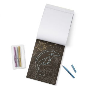 A készlet tartalmaz 20 fekete hátterű lapot, mely igazán jól ki fogja emelni a fémes színeket. A jelenetek között találsz pillangót, béke jelet, pávát, hableányt, cicát, szívecskéket, és még sok-sok egyéb formát, alakzatot. A gyermeked imádni fogja az előre megrajzolt vonalakat, amit a készlethez tartozó 4 csodás, fémes ragyogású filctollal lekövetve elkészítheti saját műalkotását! Ez a foglalkoztató füzet hosszú órákra leköti gyermeked figyelmét és fejleszti finommotoros, valamint kreatív önkifejező készségét, valamint képességét a szülőtől független, önálló játékra. Az ASTM D-4236 szabványnak megfelel