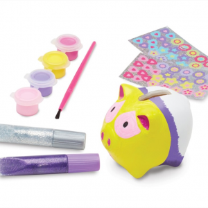 Gyűjtsd spórolt pénzedet ebben az aranyos kis malacperselyben, amit most Te dekorálhatsz ki. A játék tartalmaz egy perselyt, csillámló ragasztót, matricákat és 4 különböző színű festéket. A malacpersely hasán található nyíláson keresztül ki is veheted a pénzt, így soha nem kell összetörnöd a perselyt. A tároló kb. 7.5 cm magas. 8 éves kortól ajánlott. Figyelem! Apróbb darabok lenyelése fulladást okozhat. 3 éves kor alatt nem javasolt.