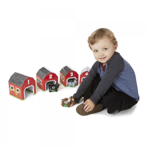 Ezzel a bájos készlettel a gyerekek egy teljes farm jelenetet állíthatnak össze élénk, piros színű ólakkal, melyekhez tartozik 1-1 állat is. Az ólak elülső paneljén található ajtók pont a hozzájuk tartozó állatokra méretezettek, míg a hátulsó részük egy-egy színes jelenetet ábrázol az adott állattal és környezetével. A gyermekeket az állatokon és az ólakon szereplő számozás is segíti a párosításban, elősegítve ezzel a gyermekek játékos korai tanulását.Fedezd fel a játék számtalan formáját.