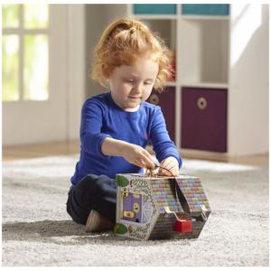 Fából készült házikó négyféle csengővel és négyféle zárral. A hozzáillő kulcsok a házhoz vannak csatolva, így nem fognak elveszni. A készlet része még négy emberfigura is. Könnyen hordozható, mérete: 25.4 x 19 x 18.3 cm