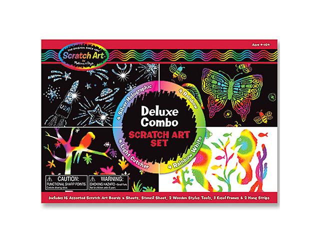 Lélegzetelállítóan színes képeket készíthetsz ezzel a szettel, melyben az izgalmas karcolásos technikát próbálhatod ki. A fehér vagy fekete réteg színes alapot rejt, melyet karcolással hozhatsz a felszínre. A karcoláshoz két eltérő méretű fa eszköz áll rendelkezésedre amikkel eltérő vastagságú vonalakat húzhatsz. A négy féle különböző karcolható felületet a gyerekek kedvükre karcolhatják, amihez segítséget nyújtanak a sablon minták is.
