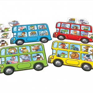 Töltsd fel a buszodat állati jó utasokkal ebben a kicsiknek szánt bingó játékban. Válaszd ki saját buszodat és gyűjtsd össze az utasaidat, hogy a képzelet szárnyán elrepítsd őket messzi földekre! Legyél Te a legügyesebb, akinek összegyűlnek az utasai, hogy a béka, kroki, maki vagy flamingó buszsofőr útnak tudjon indulni.Ez a kiváló párosító és memóriajáték 24 darab állatfigurát megjelenítő tartós, vastag kartonlapból készült, magas fényű, könnyen tisztítható kártyalapot, valamint 4 darab buszos táblát tartalmaz számos kedves állatfigurával, úgymint például teknős komával, nyúl sheriffel, elefánt asszonysággal, vagy a romantikus egyszarvúval.
