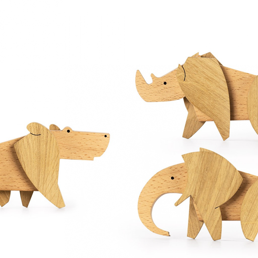 3 különböző állat rakható ki belőle: elefánt, orrszarvú, víziló