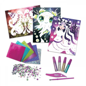 Csodálatos külsőt varázsolhatsz kedvenc Nebulous Stars karaktereidnek! Csak húzd le a fóliát az előkészített lapokról, majd a ragacsos részeket dekoráld a színes papírfóliákkal, a csillámporokkal, valamint a kis ékkövekkel! Használd a fantáziád és alkoss szebbnél szebb képeket! Nebulous Stars Csillogó dekorkészlet előkészített lapokkal, papírfóliákkal, csillámporokkal, kis ékkövekkel és kiegészítőkkel! Jó szórakozást !