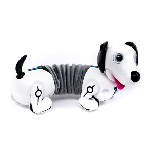 A RoboTacsi olyan, mint egy jól nevelt háziállat: követi a gazdája utasításait. Kézmozdulatra követi az utasításokat, különféle trükkök megtanulására képes. Az eb felismeri az útjába kerülő akadályokat és kikerüli azokat. A gömb alakú vezérlő segítségével irányítható a kutyus. A tacskó teste nyúlik, akár 45 cm hosszú is lehet. A játék és a vezérlő működéséhez összesen 4 db AA és 2 db AAA elem szükséges, amit a csomagolás nem tartalmaz.  Jó játékot ! Tartalom: 1 db robot kutya 1 db használati útmutató 1 db labda formájú távirányító