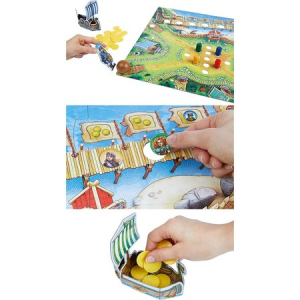Vissza a termékekhezVikingvölgyben bowling versenyt rendeznek. Elég bátor vagy hogy megmérettesd magadat? Használd a golyót, hogy ledöntsd a hordókat és egy okos taktikát, hogy a vikingeket kedvezően helyezhesd el a dokkon. A legjobb helyen álló viking játékosa fogja a legértékesebb jutalmat kapni, aki azt hajójára viheti, hogy ő lehessen a leggazdagabb viking. De a kockázatvállaláshoz bátorság kell, mert a vesztes játékosok vízbe esnek és üres kézzel térnek haza. A játék célja minél több aranyat szerezni. Amikor az összes arany kiosztásra került, a körnek vége. A játékosok még lophatnak egymástól sorban, ahogy jönnek, azután végleg befejeződik a kör. Végül a játékosok számolják össze a gyűjtött aranyérméket. A legtöbb arannyal rendelkező játékos nyeri a játékot és ő lesz a vikingvölgy főnöke. Az év gyerekjátéka díjjal büszkélkedhet 2019-ben! Jó szórakozást !