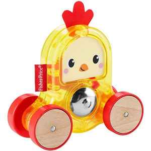 A Guruló csibe fejleszti a gyermekek tapintását, és éppen ezért több, változatos anyagból készült el. Kerekei fából, teste műanyagból, taréja textilből van, a pocakján pedig egy fém csengő kapott helyet.  A játék 10 hónapos kortól ajánlott !