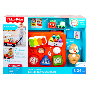 A anuló kutyusos kocsi mókás ülő- és húzogatós játékot ígér a kicsiknek. A kiskocsi az intelligens fokozatoknak köszönhetően mindig tud újdonságot tanítani a növekvő gyerekeknek.