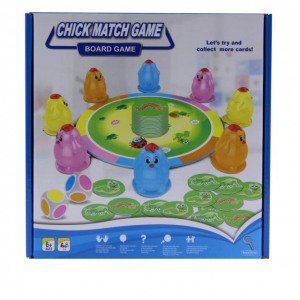 Csirkés társasjáték, dobókockával, ételkártyákat kell összegyűjteni a csirkék segítségével, nehézségi szintekkel, 22×21 cm dobozban
