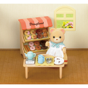 Fánkárus szett Sylvanian Families. Több, mint 30 darab részből álló szett. A kis Margaret nagyon édesszájú, és imád ínycsiklandó desszerteket és sütiket készíteni. Tea, fánk, muffin, ezzel a szettel bármelyiket el tudja készíteni.
