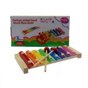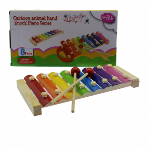 Fa xilofon, 8 hangos, szivárvány színű, 25×13 cm dobozban