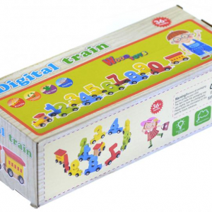 Fa vonat, 1 mozdony 1 vasúti kocsi 10 számos kocsi, mágnessel összekapcsolható, 14×10 cm dobozban