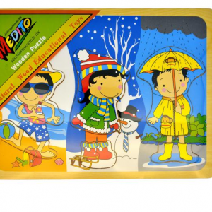 Fa puzzle, évszakok, 9 beilleszthető rész, 30×22 cm