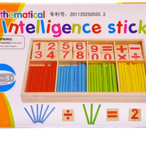 Fa számolás oktató játék, 48 darab színes pálcika 24 darab szám/műveleti jel, 24×16 cm dobozban