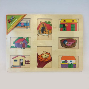 Fa párosító játék, "kép alatt kép", ki hol lakik?, 8 képpel, 30×22 cm