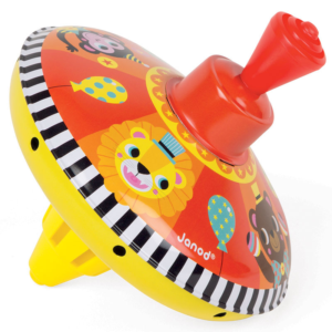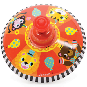 Nagyon színes búgócsiga, a kisebbek ügyességét fejleszti. Ha felhúzzák, zümmögő hangot ad. Egyszerűen le kell nyomni a kart, hogy az állatok gyorsan elkezdjenek forogni. A búgócsiga forgás közben egyensúlyban marad. Fémből készült, rajta cirkusz témájú állatokkal. 2 típusban kapható. Csomagolás: műanyag nyéllel. Termék méret: 13...