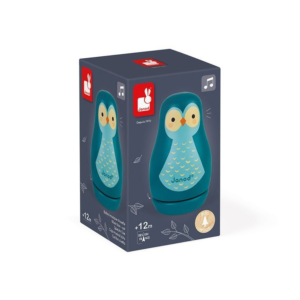A JANOD francia márka fából készült bagoly zenedoboza gyönyörű és praktikus dekoráció egy gyermekszobához. Eredeti kialakítás jellemzi: lekerekített, széles forma, amely garantálja a stabilitást és a gyönyörű színeket: a bagoly intenzív sötét türkizkék háttal és szárnyakkal, világoskék hassal és nagy bézs szemekkel rendelkezik. A zenedobozt a bagoly...